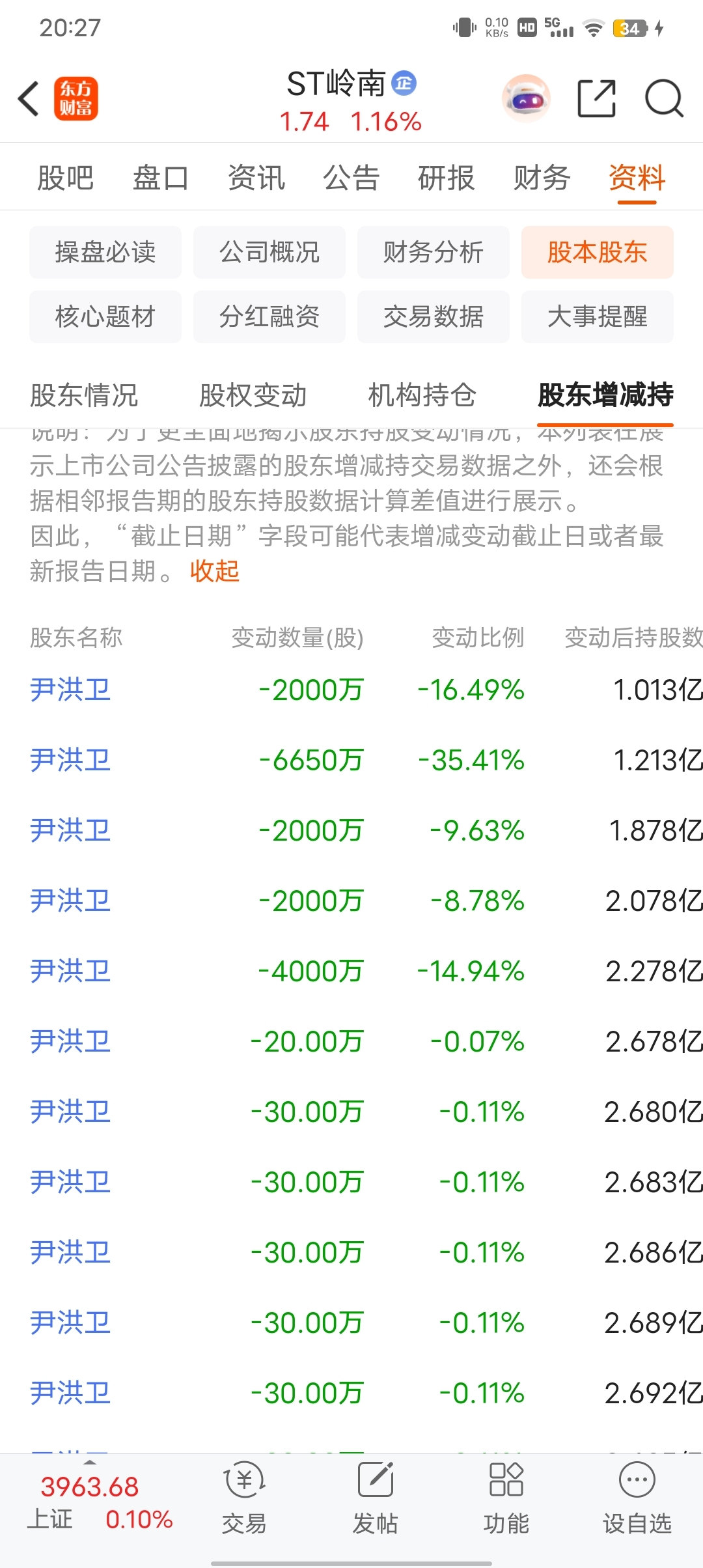 $ST岭南(SZ002717)$ 尹洪卫还有1亿股股,加上12月29号三场拍卖,这个尹洪卫基本是没啥股票了