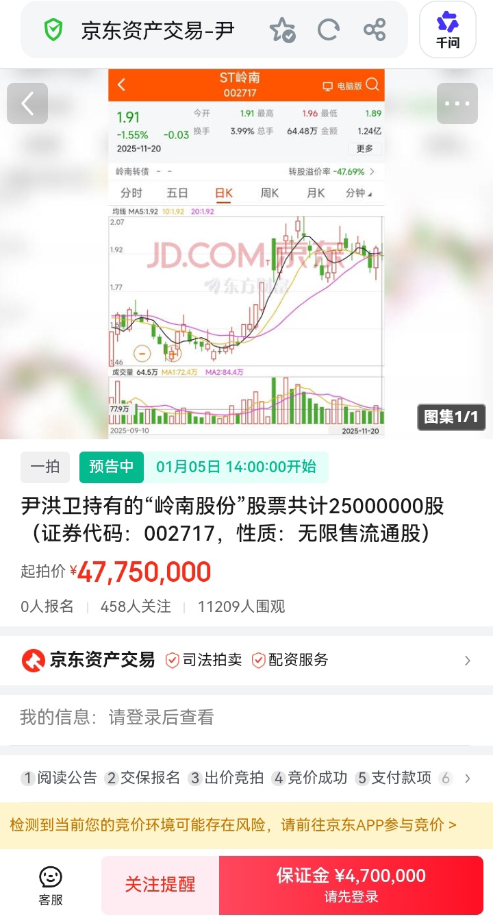 $ST岭南(SZ002717)$ 1月5日拍卖价居然1.91,100%流拍啊。
