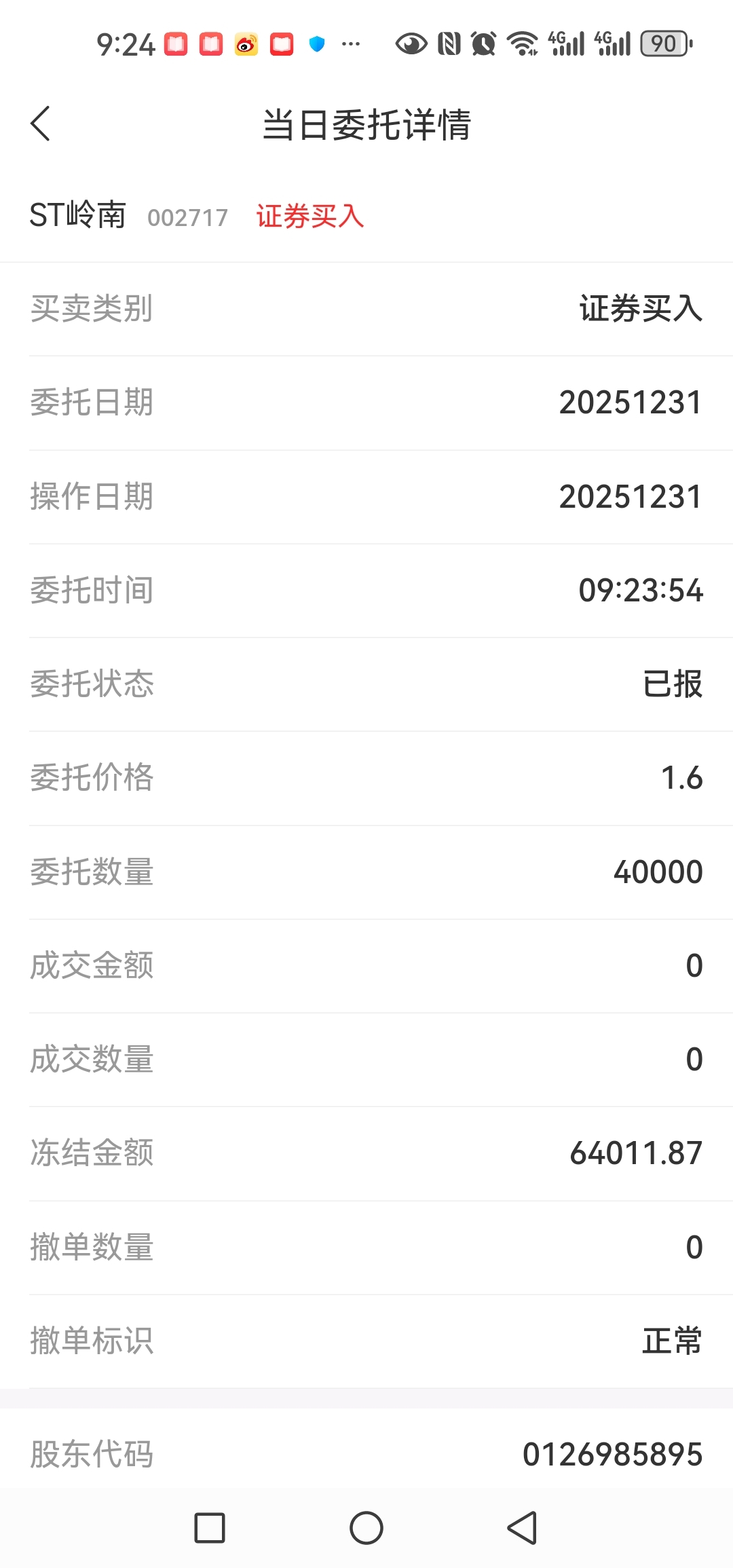 $ST岭南(SZ002717)$ 又是全屏唱空,全股/吧利/空消息满世界飞的时候,老哥我依旧逆回购一丢丢,虽不多也是真金白银!但是有机会还是能做T尽做T降低成本,那怕几分也不错!希望能喝酒吃肉