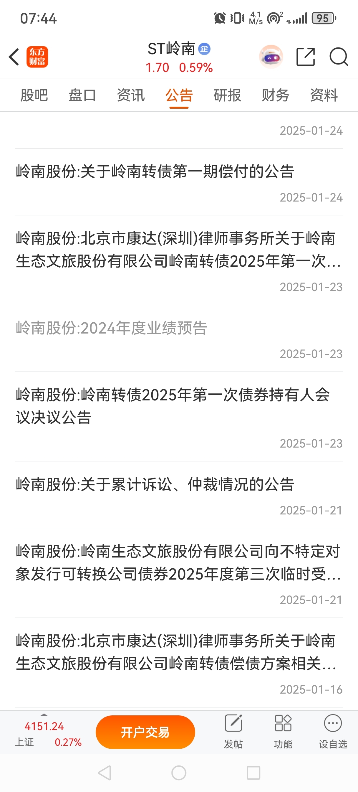 $ST岭南(SZ002717)$ 去年业绩预告这是23号