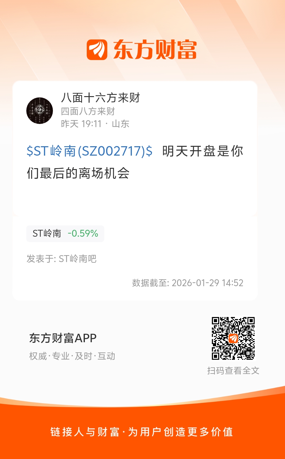 $ST岭南(SZ002717)$  明天开盘是你们最后的离场机会
