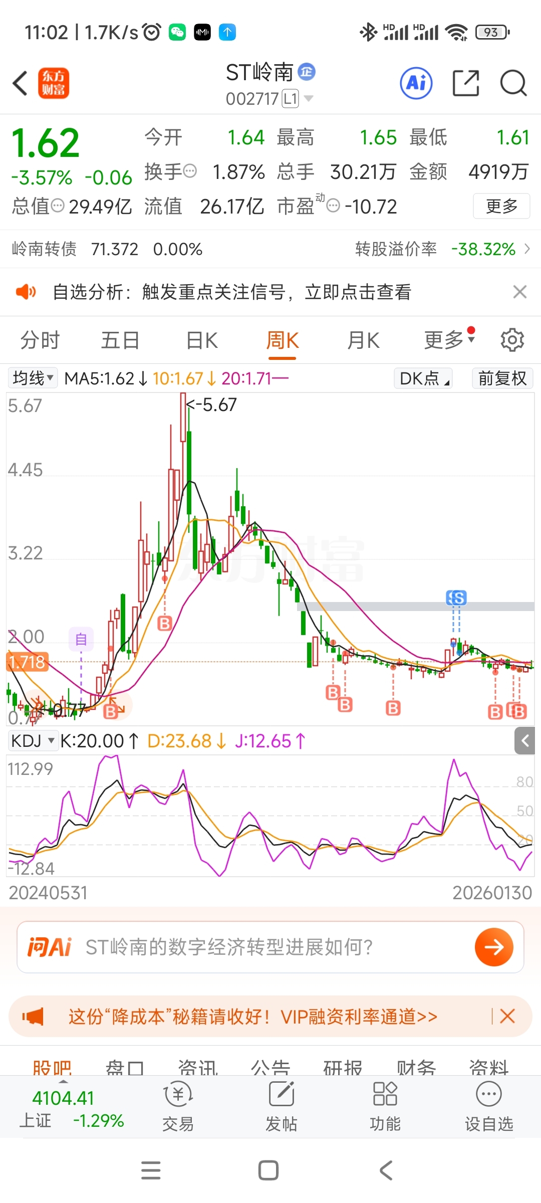 $ST岭南(SZ002717)$ 我在玩什么哦