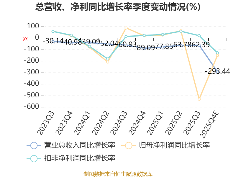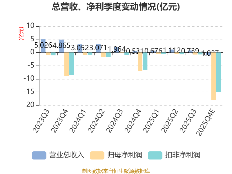 预计公司可能发生持续亏损对已计提的递延所得税资产重新计量,冲回递延所得税资产损失7亿元。公司2025年第四季度与客户对年内完工项目进行了结算,根据结算结果对2025年前三季度核算的收入进行了调整,因此导致公司第四季度营业收入为负值。
