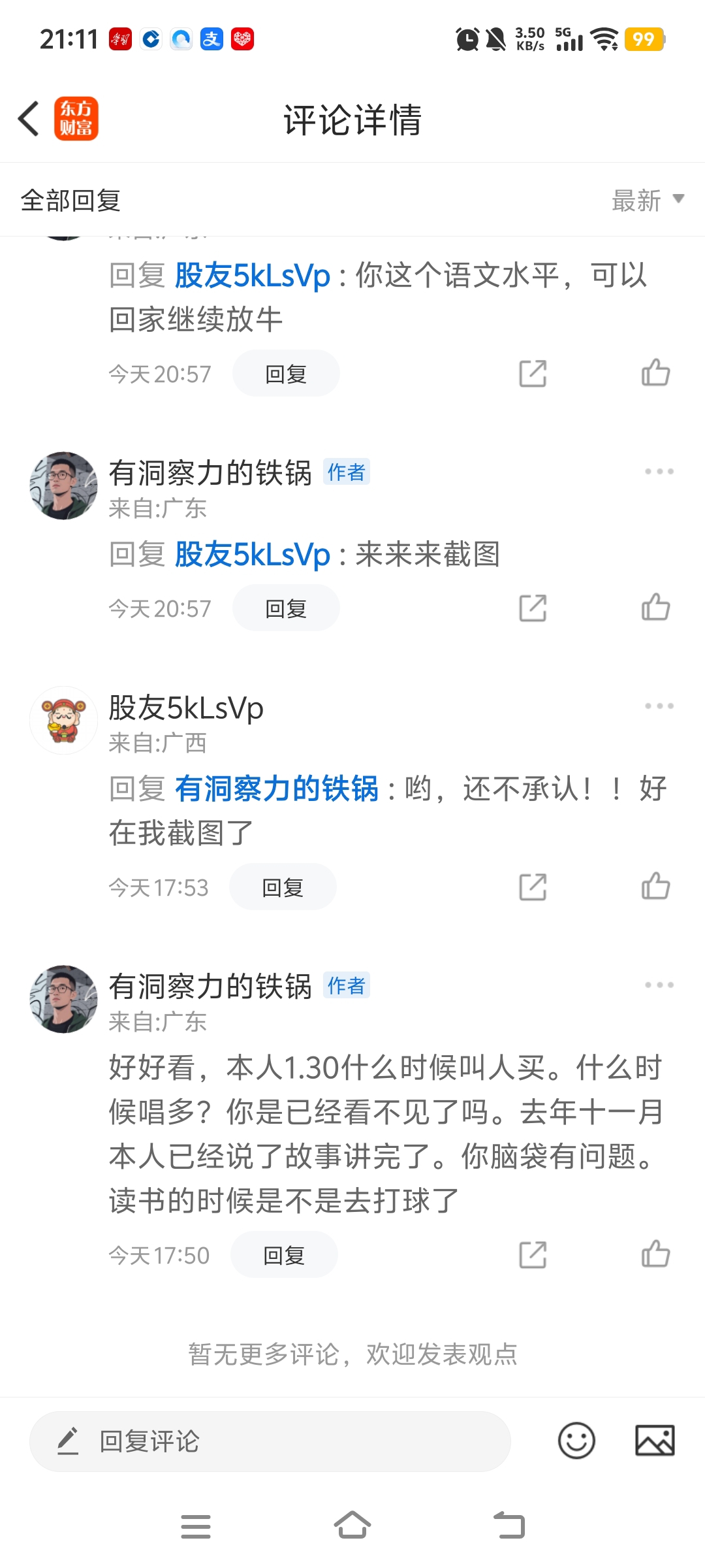 $ST岭南(SZ002717)$ 有洞察力的铁锅,你这条小丑,你再惹毛我,我发到每个股吧去