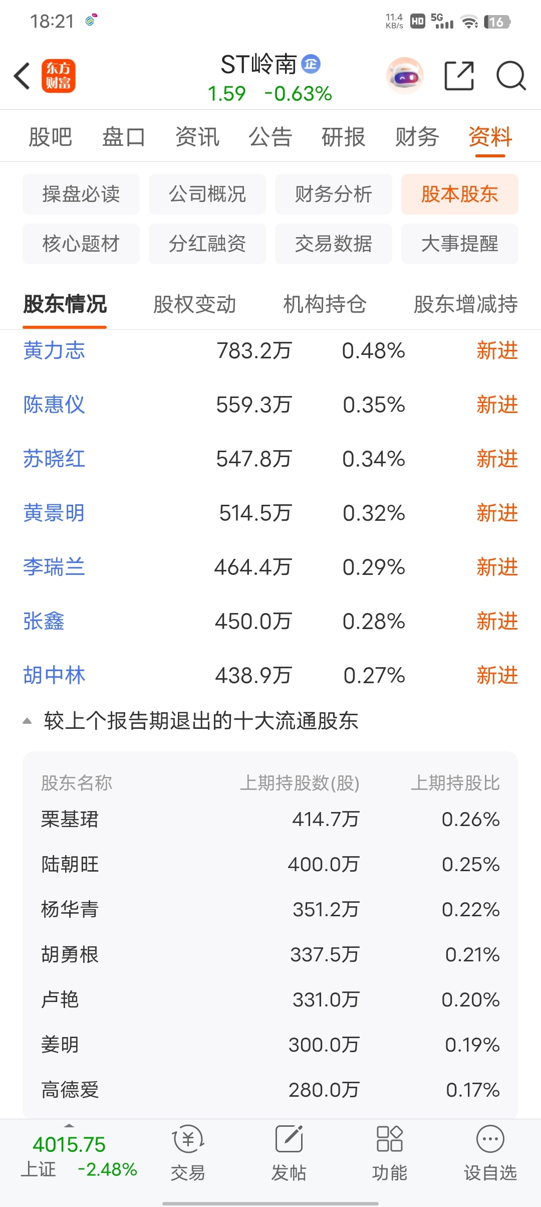 $ST岭南(SZ002717)$ 股东怎么样?