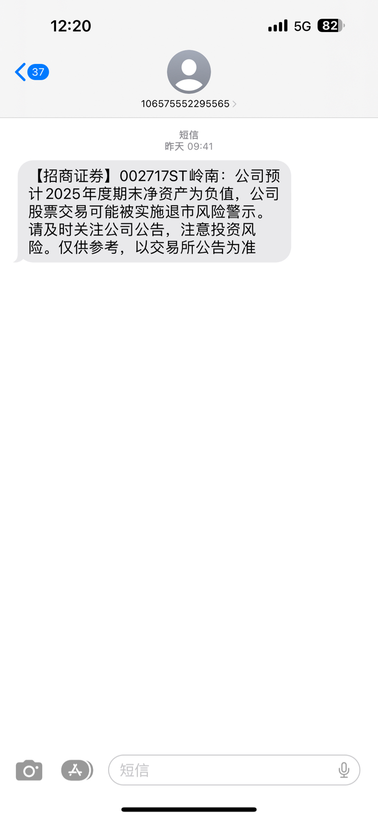 $ST岭南(SZ002717)$ 不知道你们有没有收到这条短信