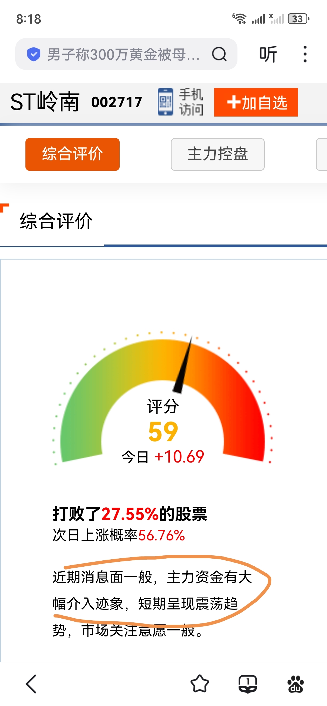 $ST岭南(SZ002717)$ 看图说话:主力资金监控上显示“主力资金有大幅介入”的。则充分说明ST岭南被主力机构看好了。