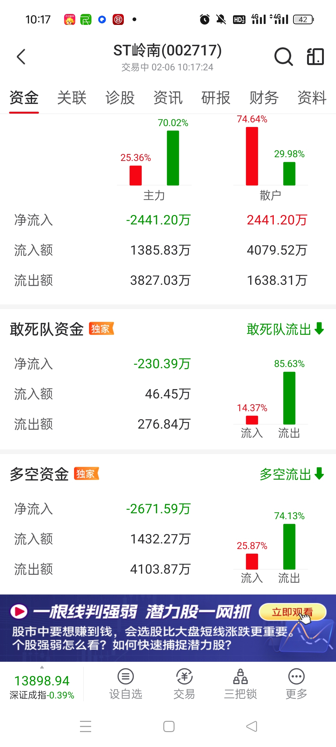 $ST岭南(SZ002717)$ 主力净卖出2700万!