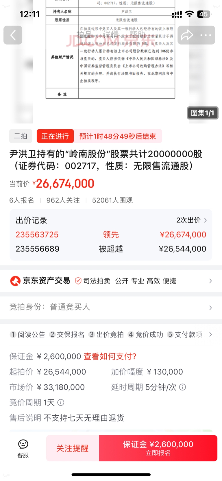 $ST岭南(SZ002717)$ 主力资金借拍卖