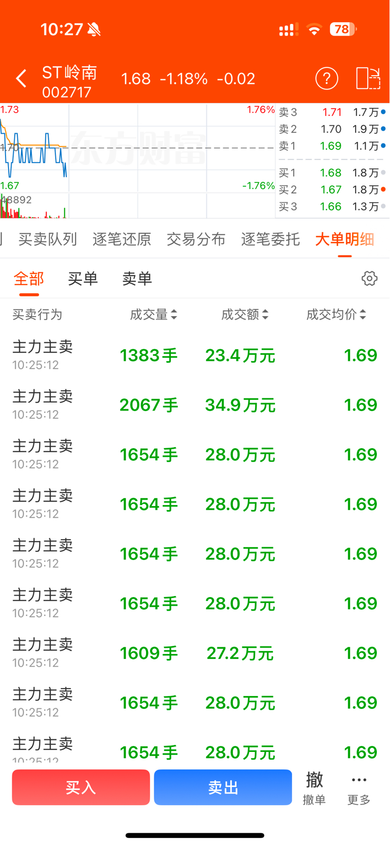 $ST岭南(SZ002717)$ 真ex,有本事跌停