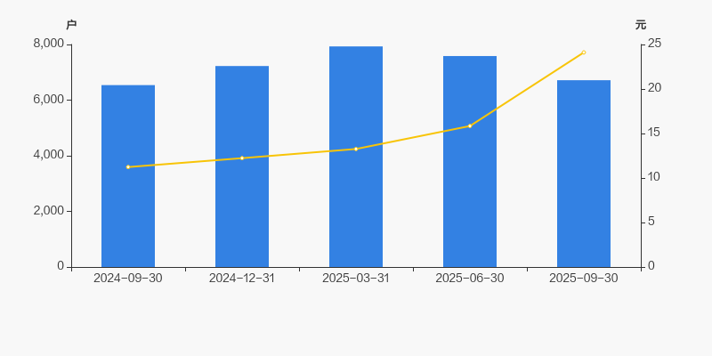 2024年9月30日至今,公司股东户数有所增长,区间涨幅为2.69%。2024年9月30日至2025年9月30日区间股价上涨114.69%。