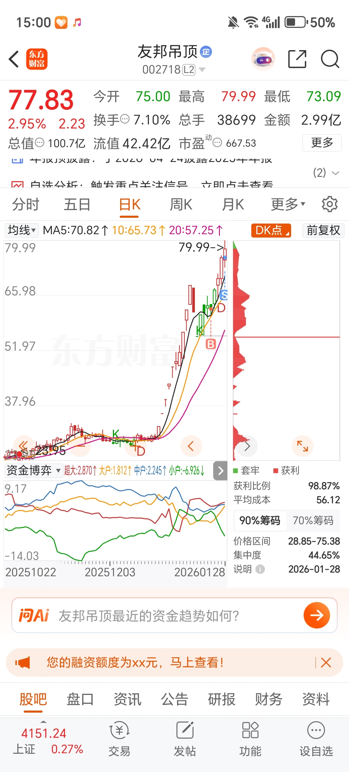 $友邦吊顶(SZ002718)$ 我胆子小,今天先走了