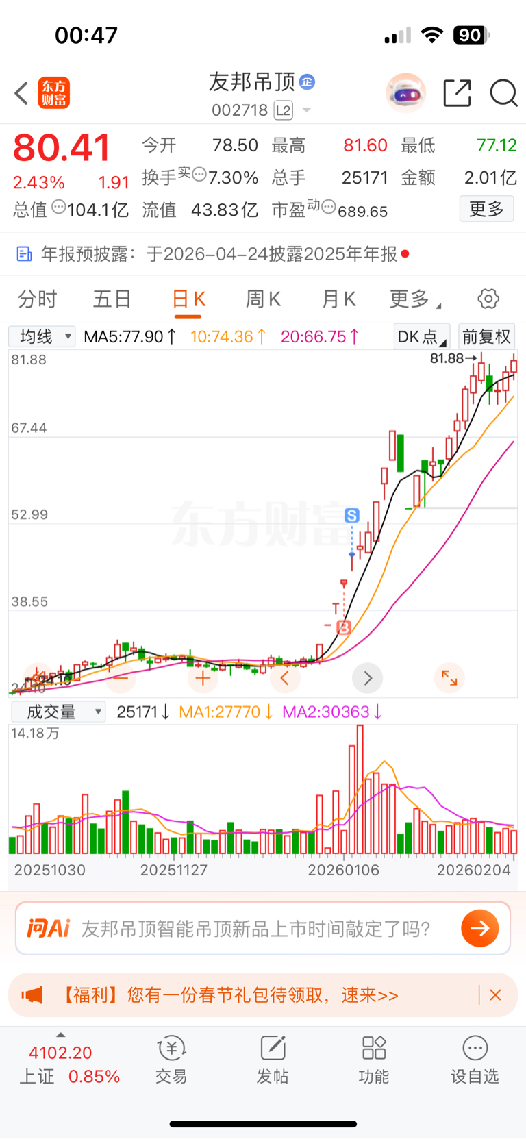 $友邦吊顶(SZ002718)$ 回头看,你已走远,,,,,,
