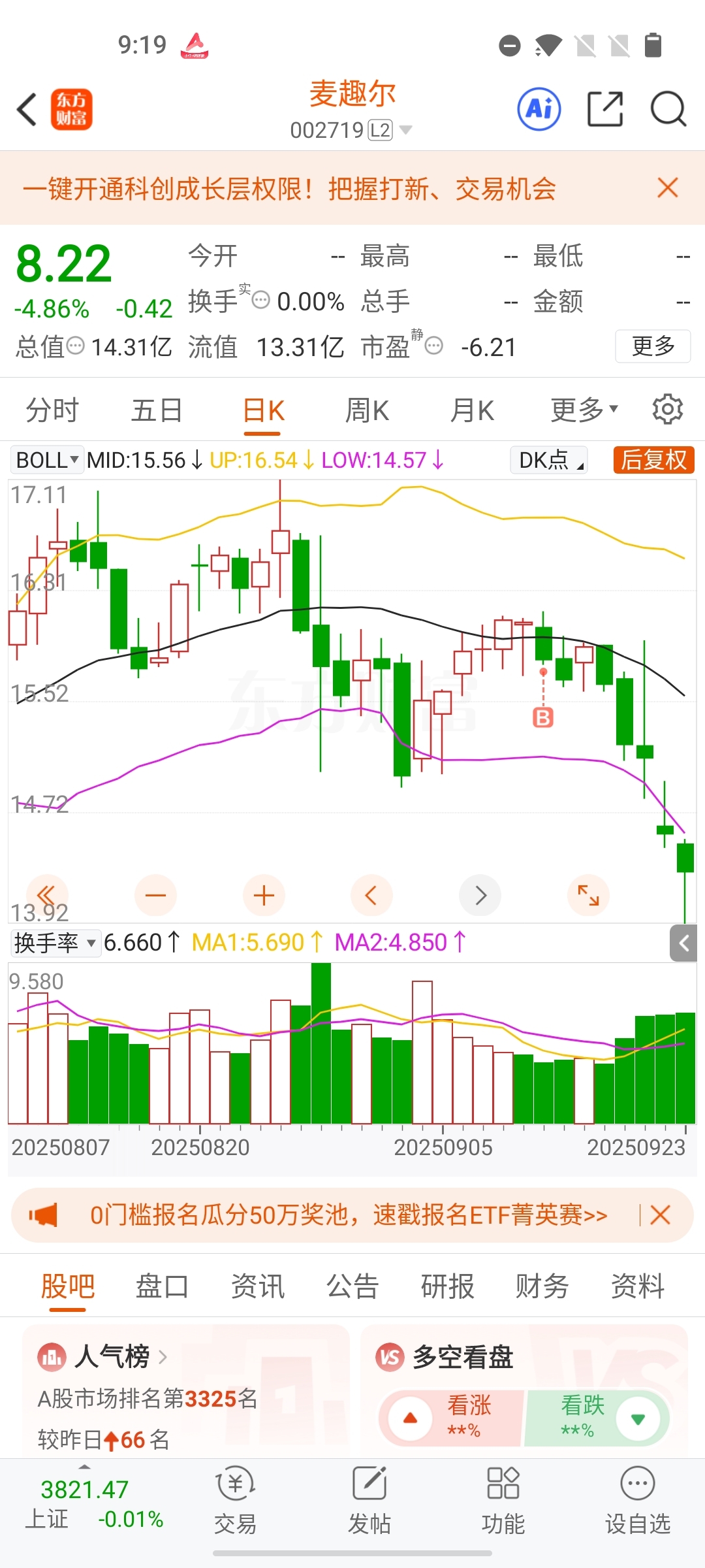 $麦趣尔(SZ002719)$ 这就针对我来的呀,买啥跌啥,卖啥涨啥