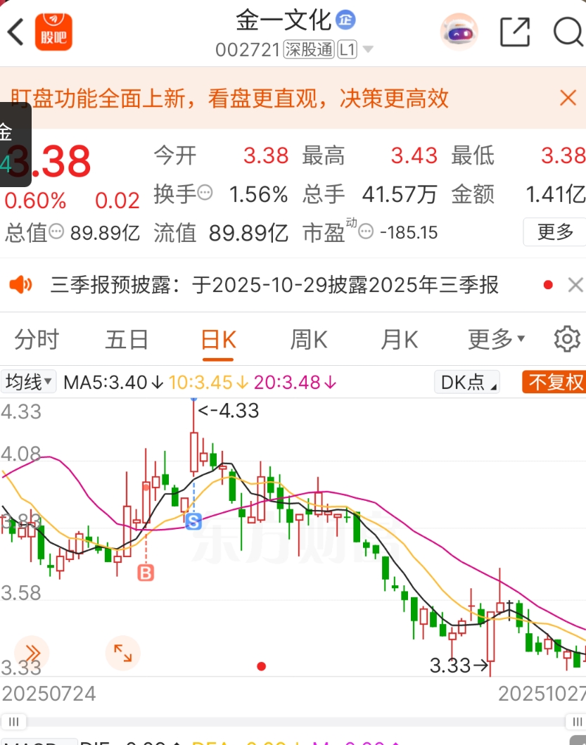$金一文化(SZ002721)$ 今天突然想起回来看看,当初幸好微赚清仓了