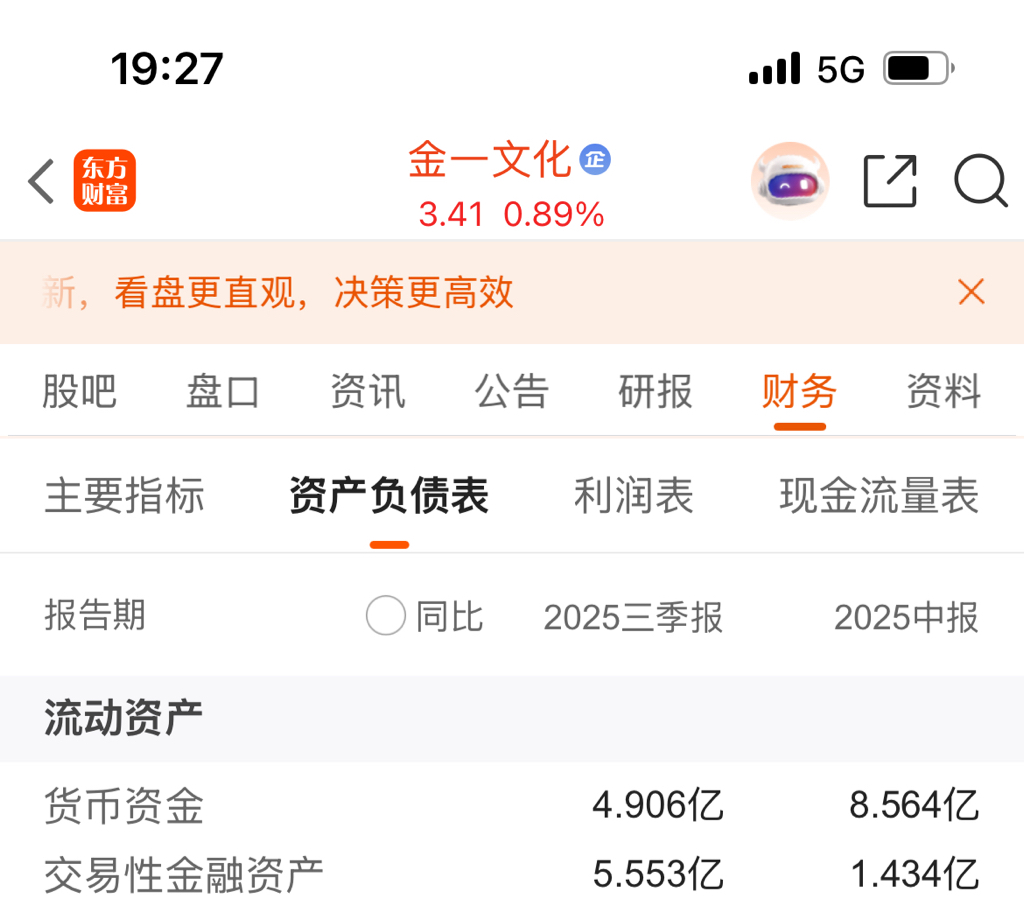 $金一文化(SZ002721)$ 交易性金融资产比二季度大增,是不是又增加了黄金期货?