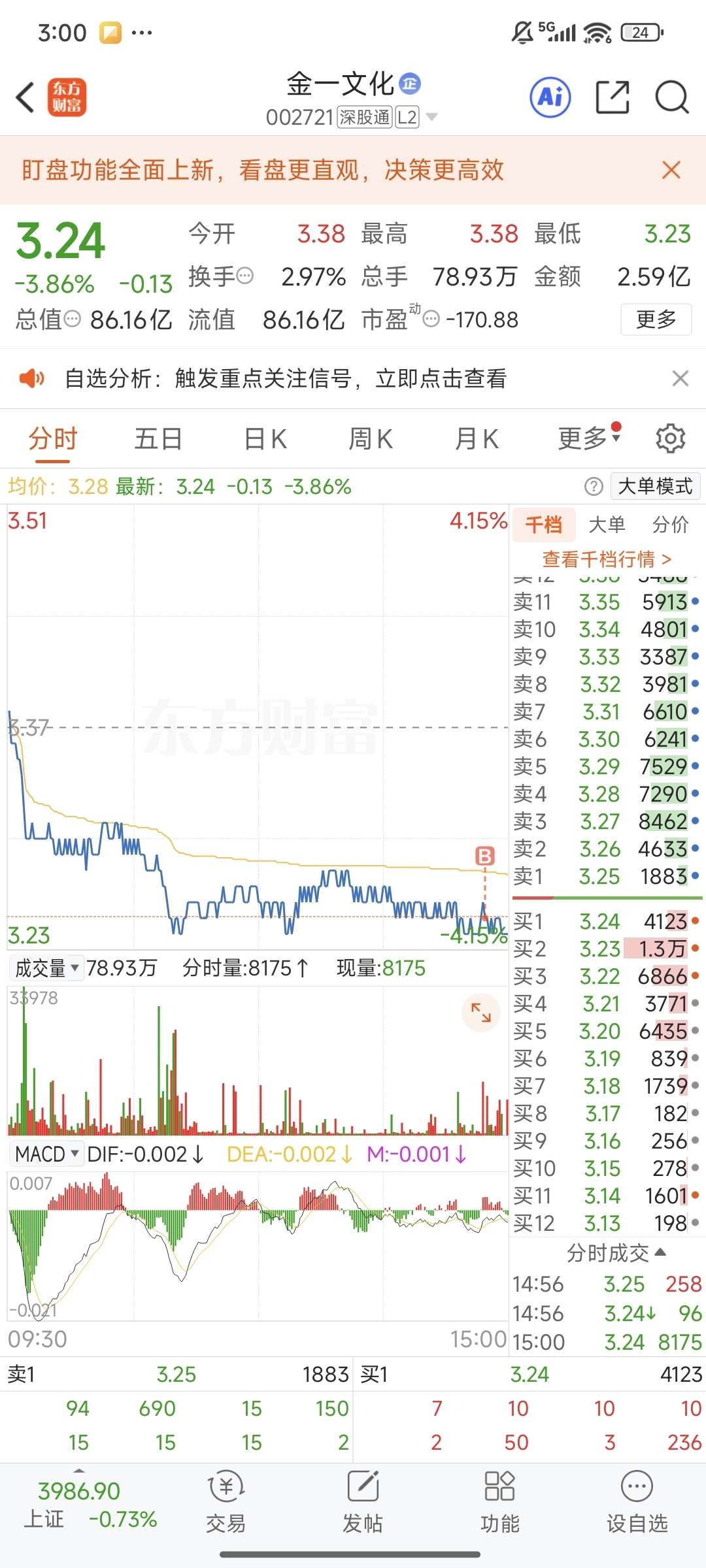 $金一文化(SZ002721)$ 还是难以做到知行合一,应该明天进货的,博个反弹。