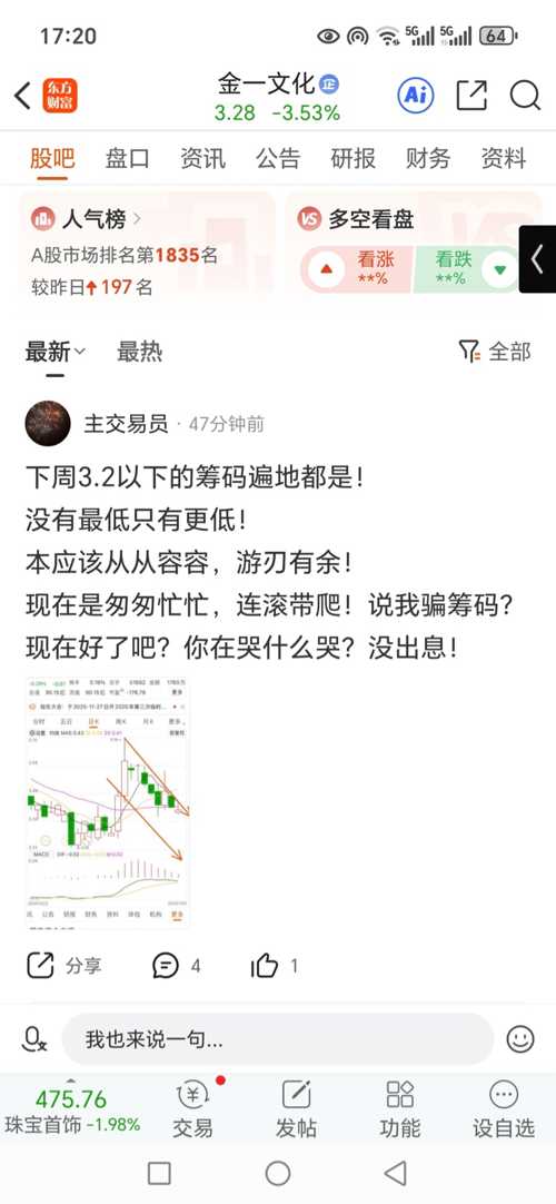 温馨提示: 1.根据《证券法》规定,禁止编造、传播虚假信息或者误导性信息,扰乱证券市场;2.用户在本社区发表的所有资料、言论等仅代表个人观点,与本网站立场无关,不对您构成任何投资建议。用户应基于自己的独立判断,自行决定证券投资并承担相应风险。《东方财富社区管理规定》