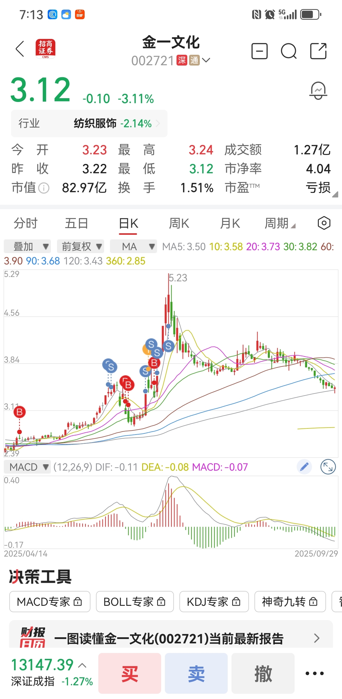 $金一文化(SZ002721)$ 兄弟们别慌,破了3块我就来