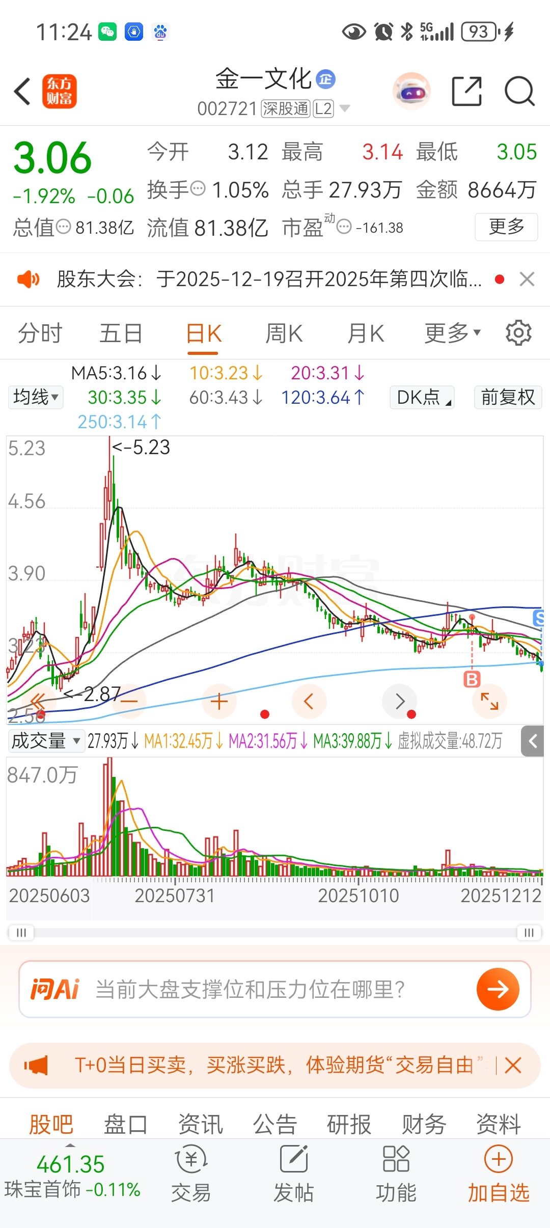 $金一文化(SZ002721)$ 误入,破位阴跌……割晚了,损失不小