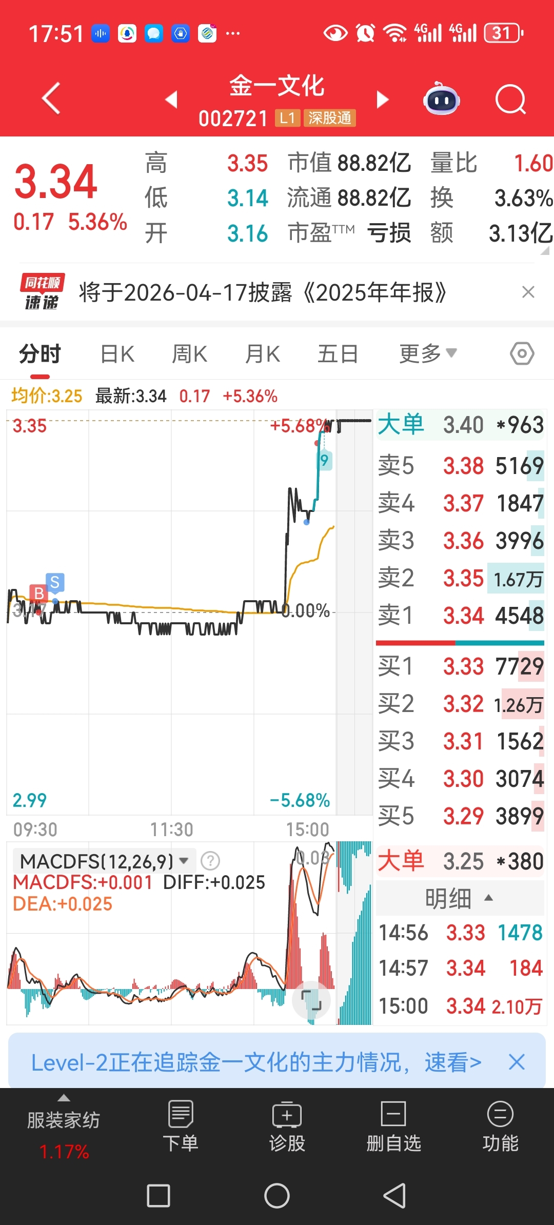 $金一文化(SZ002721)$ 尾盘我也出力了。。爱你们啊