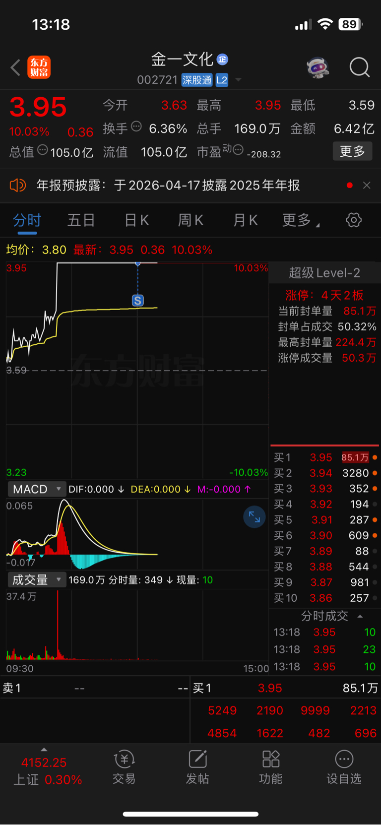 $金一文化(SZ002721)$ 我走了 我是真怕明天A杀