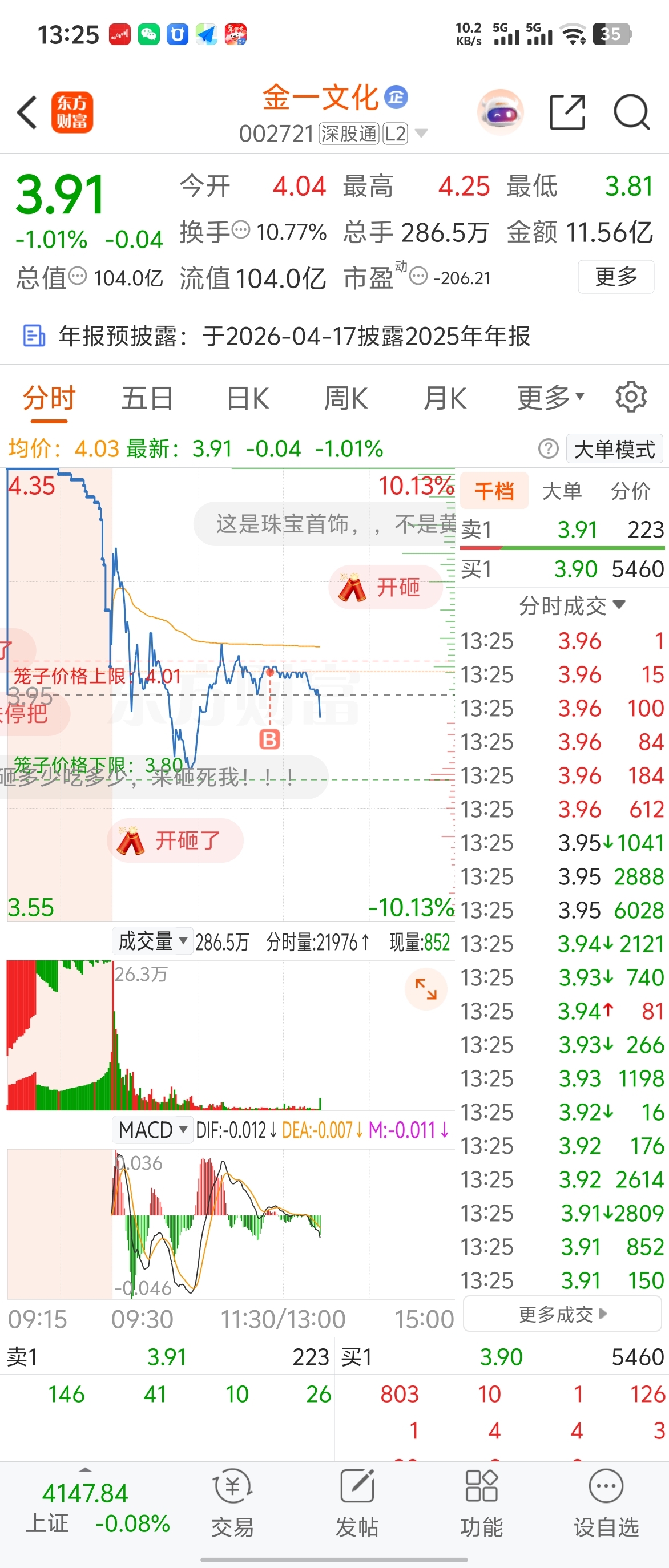 $金一文化(SZ002721)$ 不好意思各位,被我买崩了。