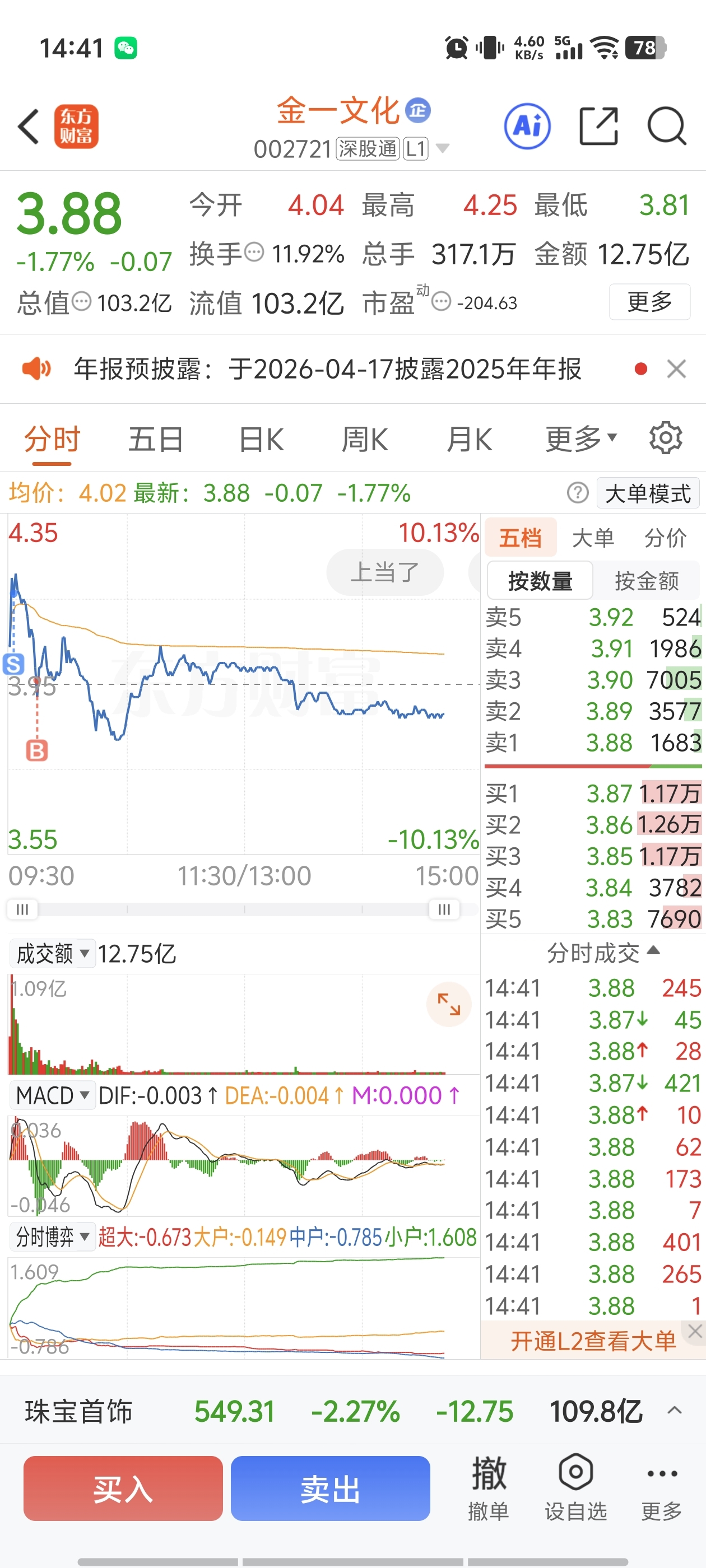 $金一文化(SZ002721)$ 我也真是手欠