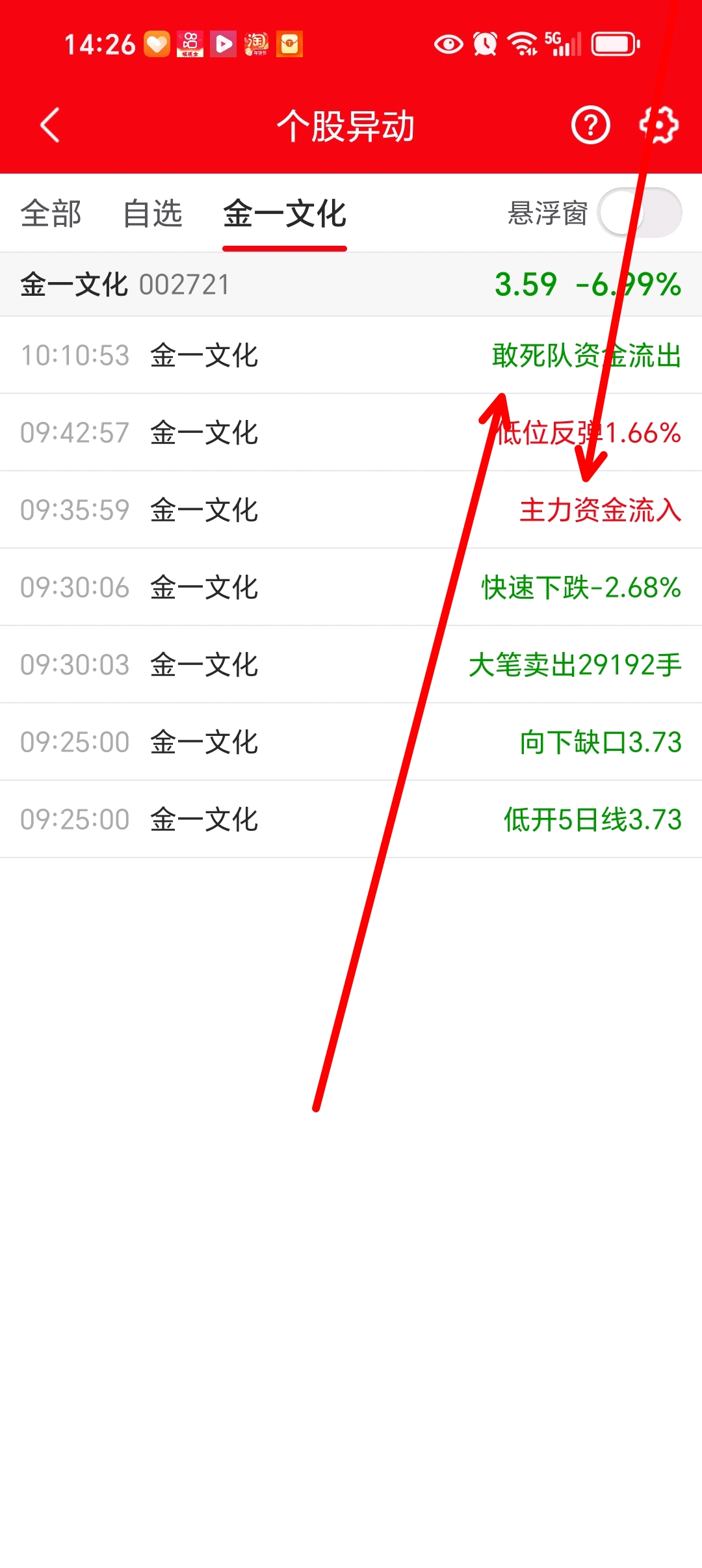 $金一文化(SZ002721)$ 星期五,别人砸盘,主力护盘