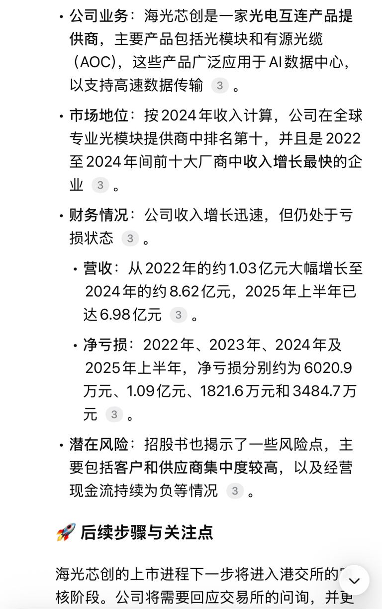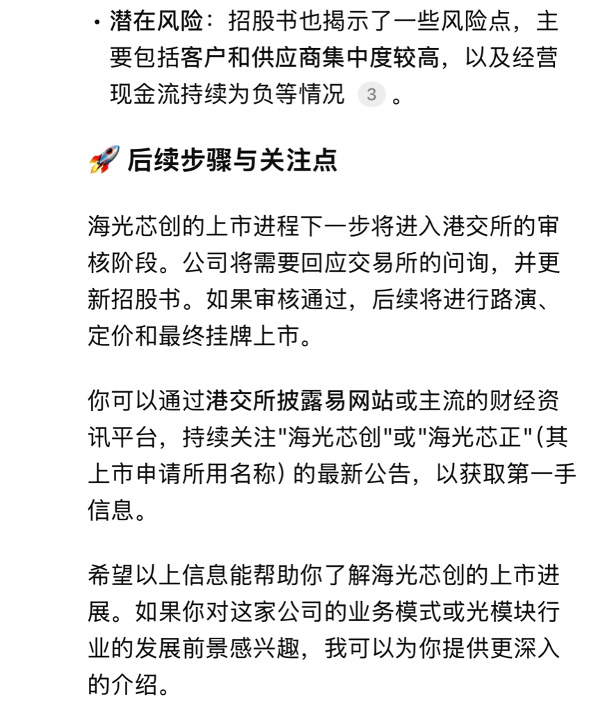 公司投资的光模块和有源光缆公司“海光芯创”终于要在港交所上市啦~