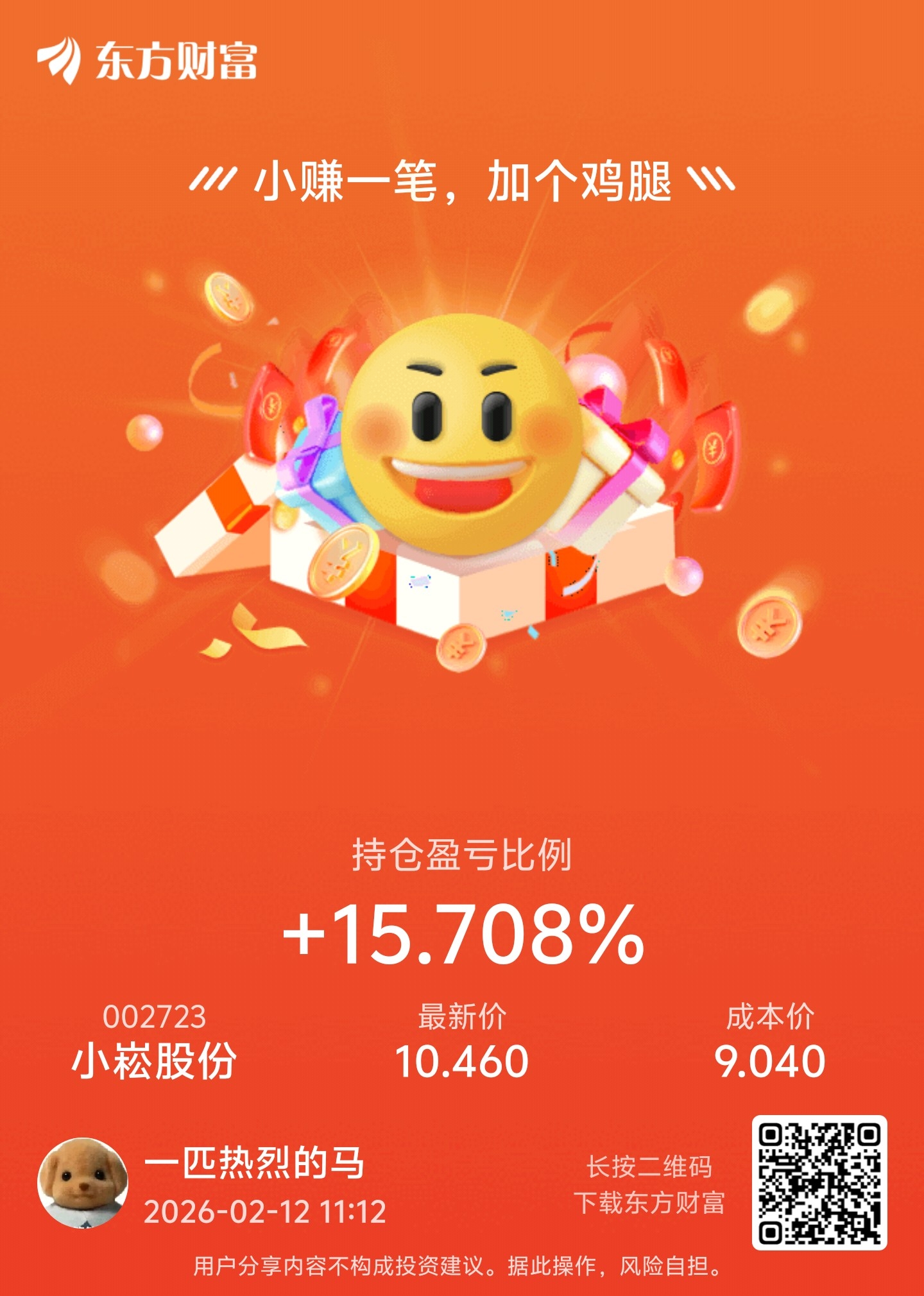 温馨提示: 1.根据《证券法》规定,禁止编造、传播虚假信息或者误导性信息,扰乱证券市场;2.用户在本社区发表的所有资料、言论等仅代表个人观点,与本网站立场无关,不对您构成任何投资建议。用户应基于自己的独立判断,自行决定证券投资并承担相应风险。《东方财富社区管理规定》