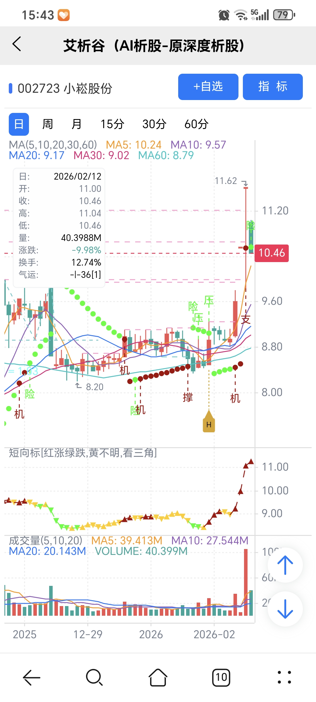 风险:股价下穿艾短波或红变绿、绿字。