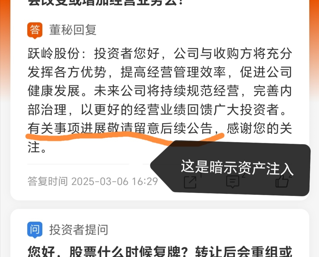 $跃岭股份(SZ002725)$ “龙电华鑫是否会借此注入上市公司?”这其实是在暗示,一旦成真,20板以上!