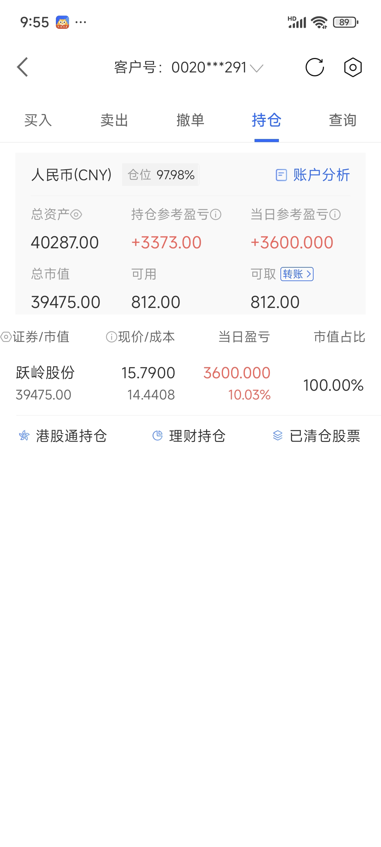 从没让我失望过。做跃岭都第四个年头了。我真的希望这次别在洗了。估计老散户没几人了