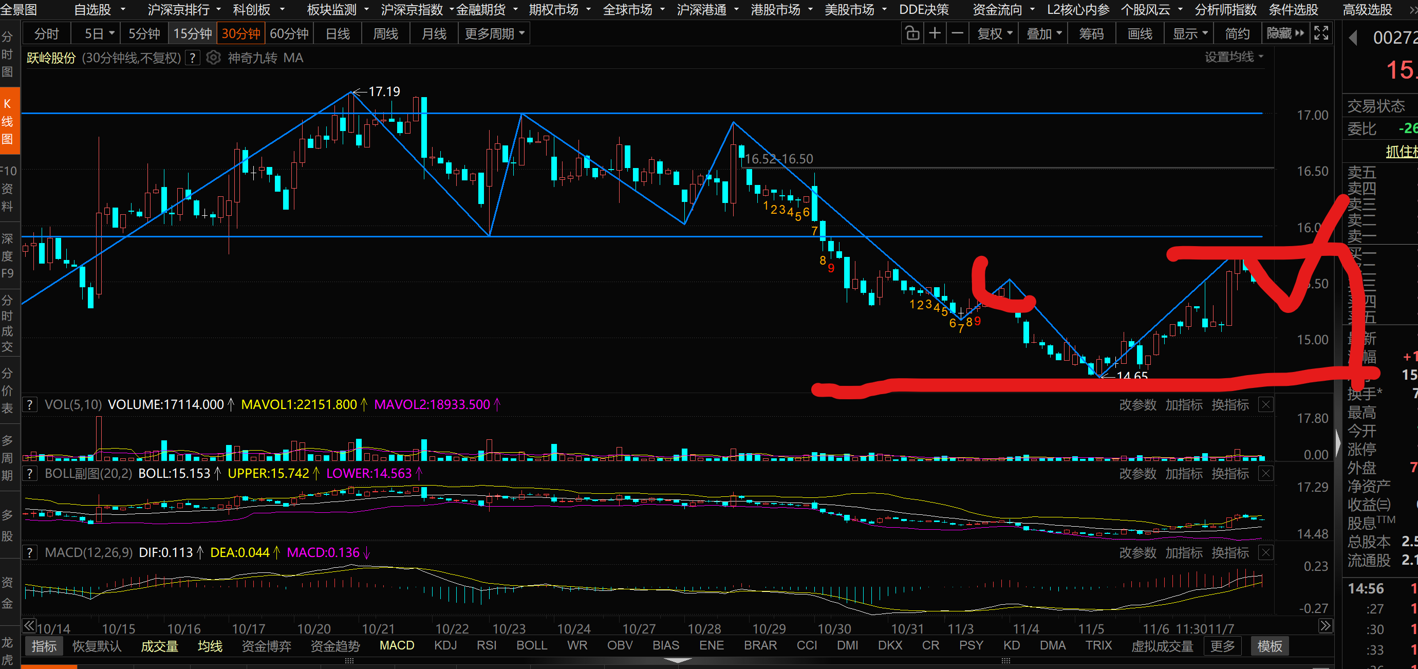 星期四说的问题不大哦 延续30分钟上升一笔 早上冲高后 回踩继续上攻是没有想到的