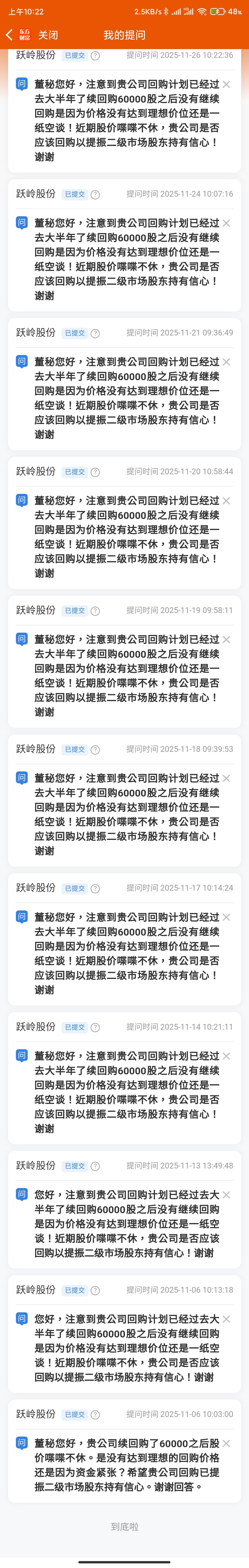 $跃岭股份(SZ002725)$ 公司不回购,意味著还没有到回购心理价位,现在只是微反弹。