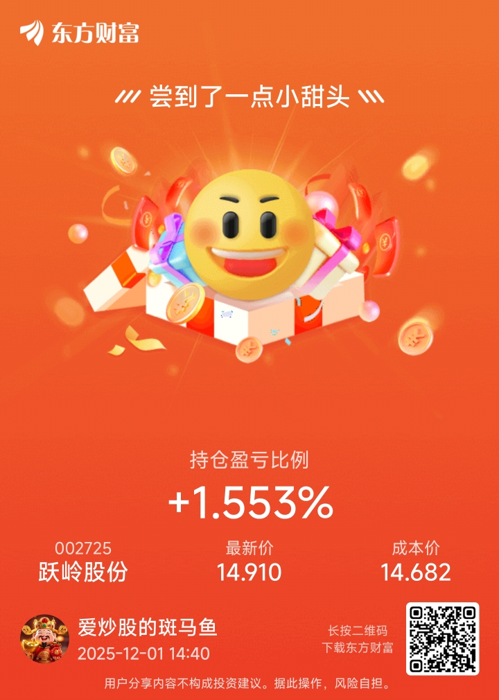 $跃岭股份(SZ002725)$ 从挣3万多,然后看好,一直补仓加大,现在相当于没有盈利