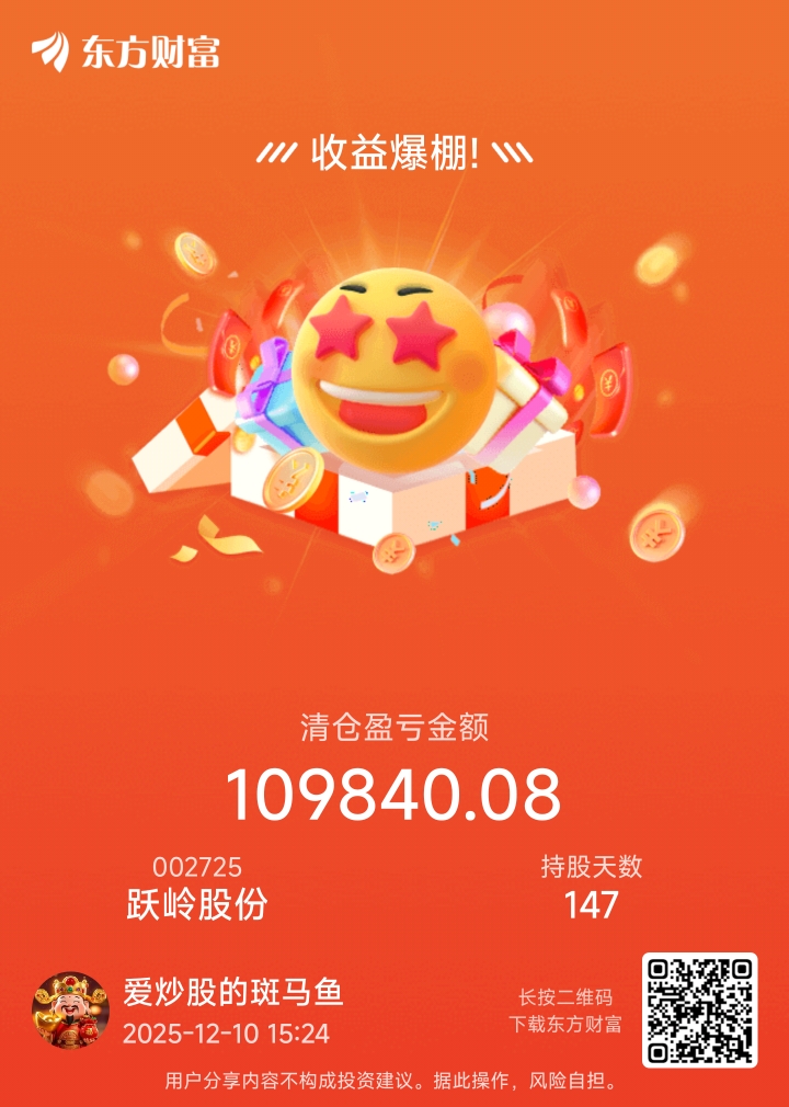 $跃岭股份(SZ002725)$ 今天板上卖了,感觉被洗出去了,祝大家继续发财,明天有机会再进来
