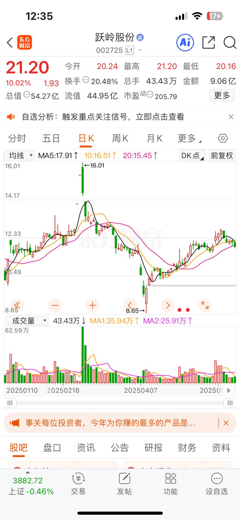 $跃岭股份(SZ002725)$ 下午巨量炸板 ,三班组告诉你们什么叫a杀