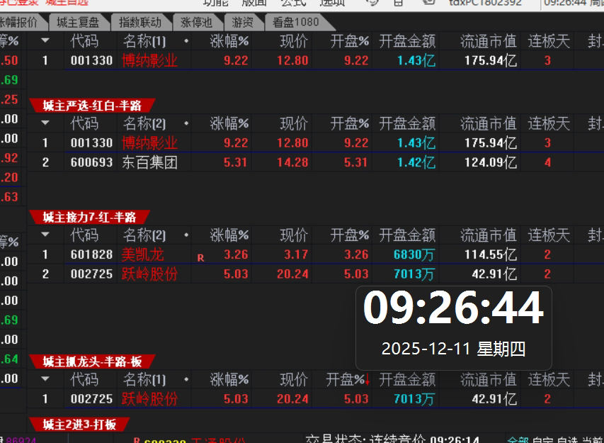 今日的二进三及抓龙头