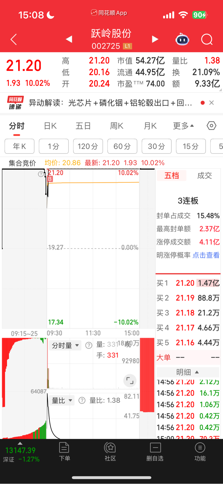 $跃岭股份(SZ002725)$ 二进三唯一活口,明天理应有溢,同身位没有竞争对手了