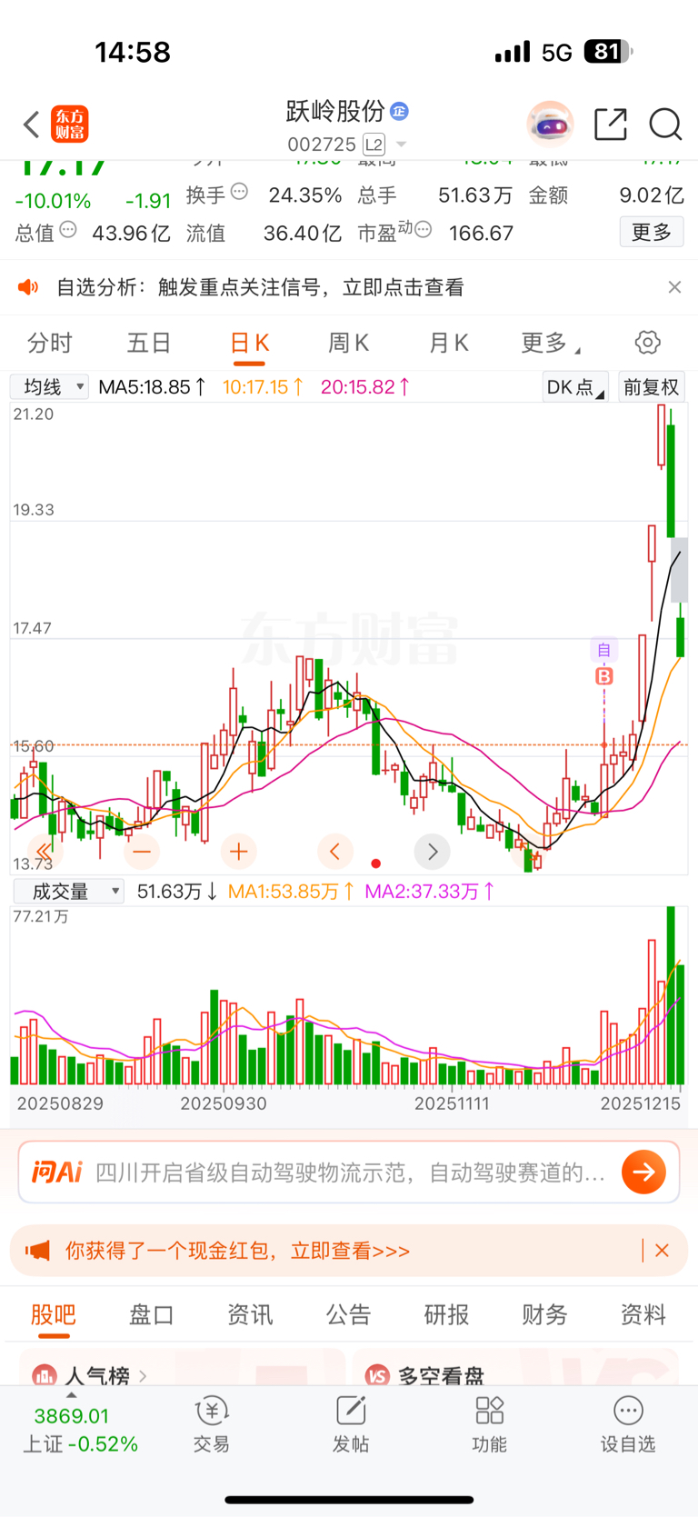 $跃岭股份(SZ002725)$ 5天吃了5个板,明天是啥板?