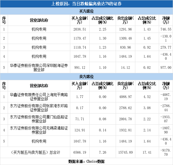多主力现身龙虎榜,跃岭股份跌停(12-15)
