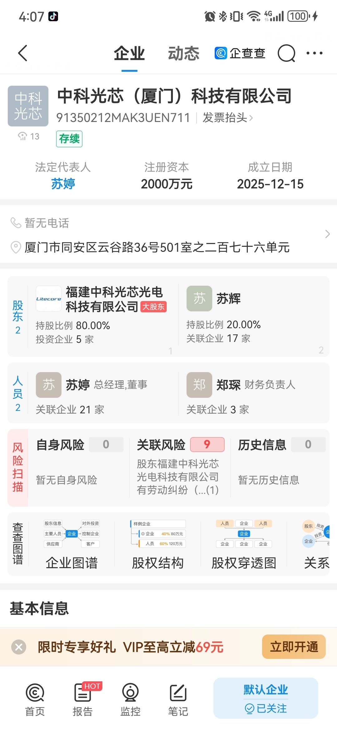 已经设立2个月了,公司技术研发前沿阵地,我们武汉研发刚去过,主要是依托厦门大学光