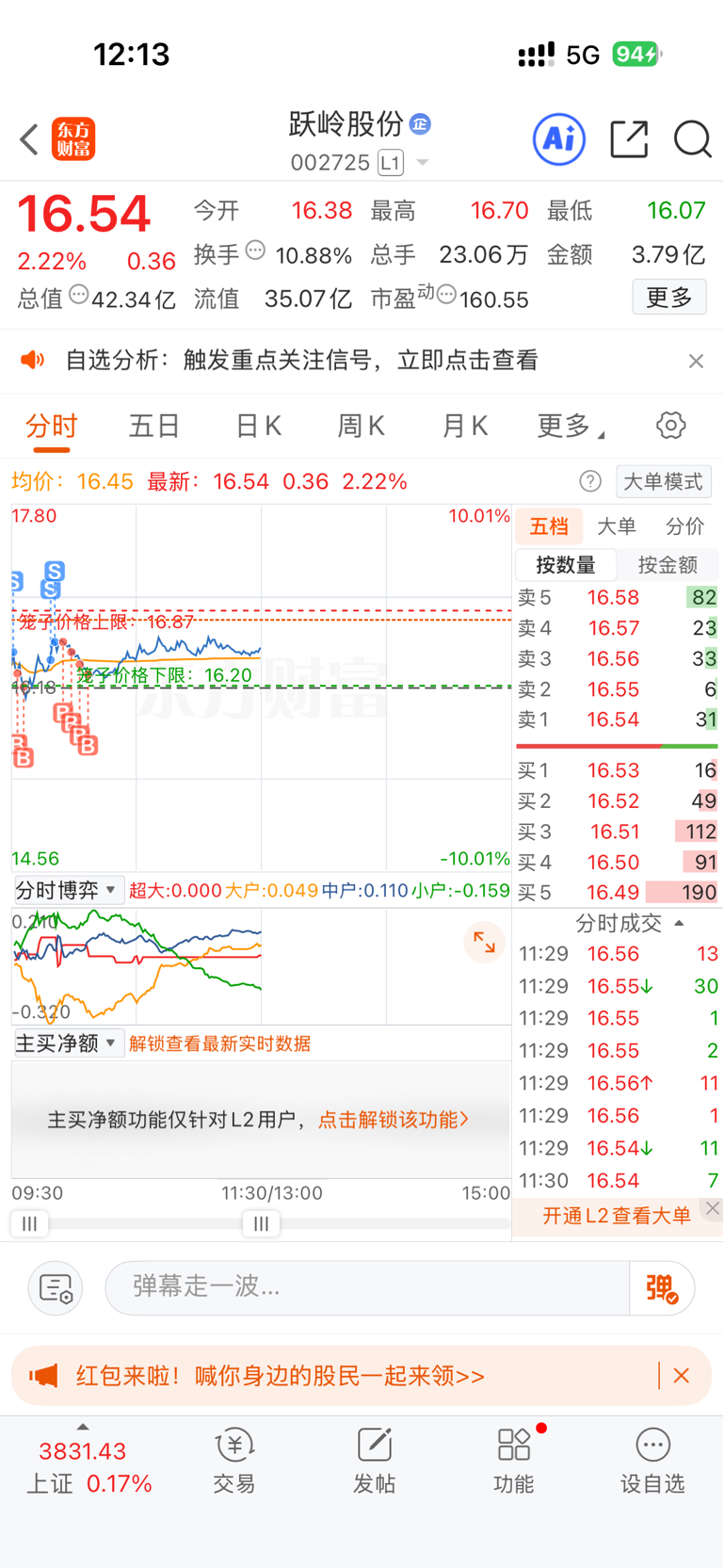 $跃岭股份(SZ002725)$ 简单t了一下,降些成本