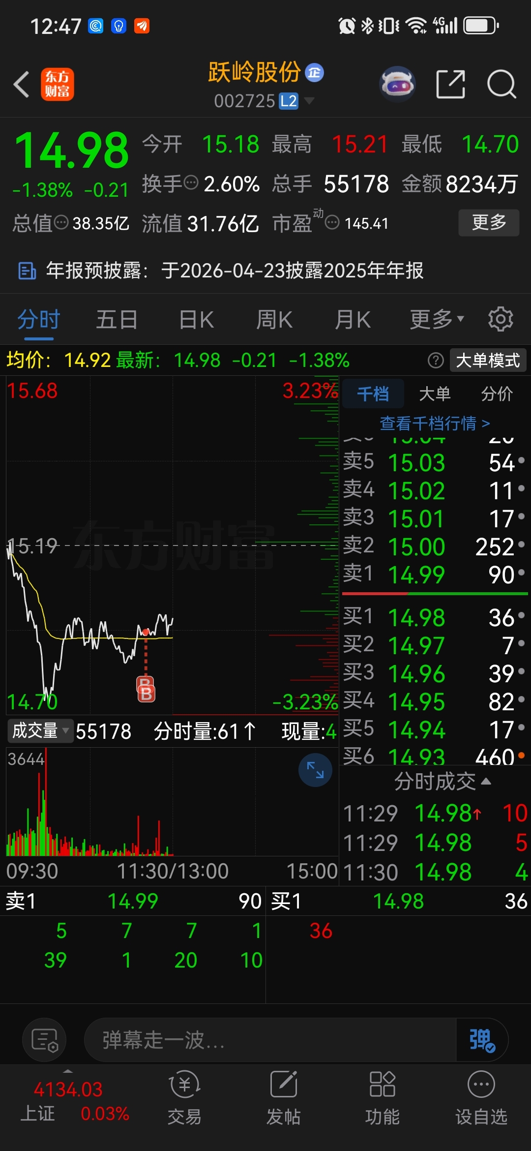 $跃岭股份(SZ002725)$ 最高价回调了30%可以关注一下。分批加仓时间到啦
