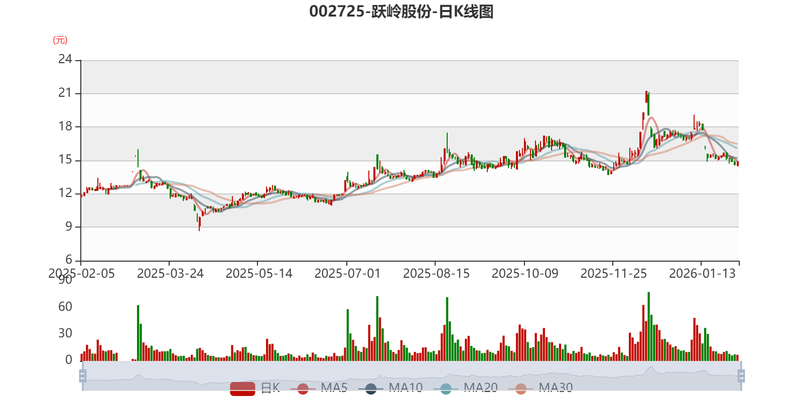 中证智能财讯跃岭股份(002725)1月30日晚间披露2025年度业绩预告,预计2025年归母净利润1200万元至1800万元,同比下降61.86%-74.57%;扣非净利润预计270万元-405万元,同比下降16.03%-44.02%;基本每股收益0.0469元/股-0.0703元/股。以1月30日收盘价计算,跃岭股份目前市盈率(TTM)约为211.63倍-317.44倍,市净率(LF)约3.7倍,市销率(TTM)约5.57倍。