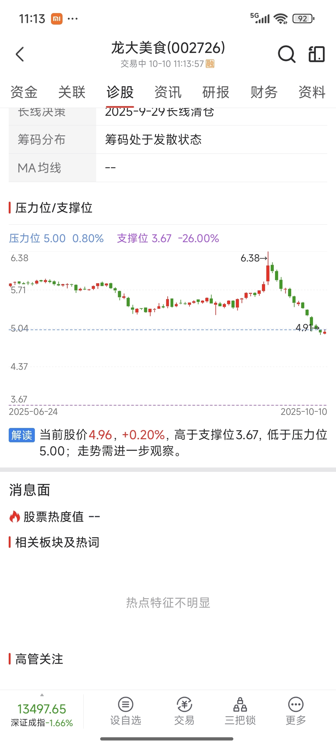 $龙大美食(SZ002726)$ 如果没有支撑位还会一直跌下去,是不是有点太恐怖