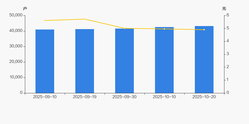 自2025年9月10日以来,公司股东户数连续4期上涨,截至目前增幅为5.47%。2025年9月10日至2025年10月20日区间股价下降12.66%。