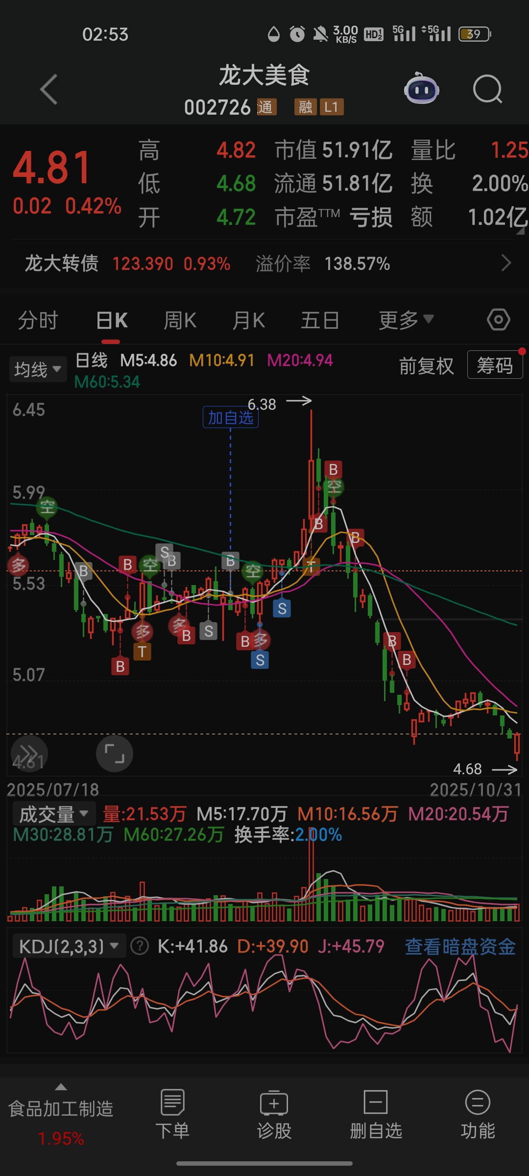 $龙大美食(SZ002726)$ 怎么办,亏得我都睡不着
